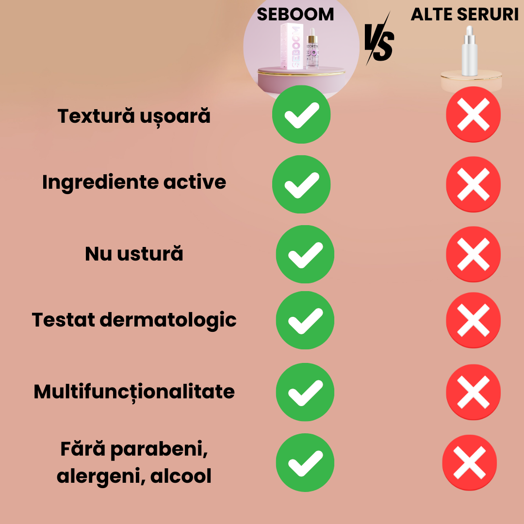 Seboom oferă performanță și calitate superioară, pentru un ten sănătos și echilibrat. Alege excelența!